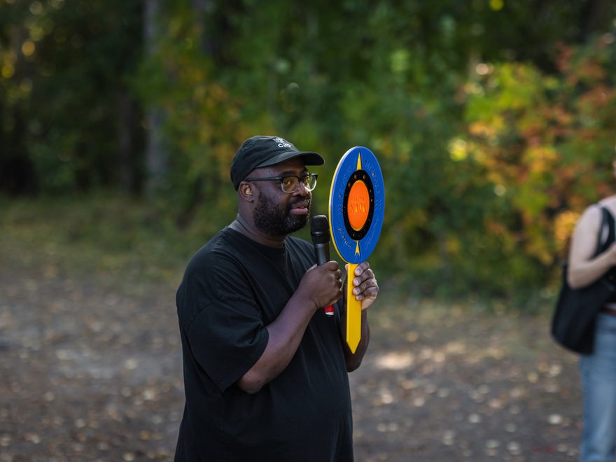 Harold Offeh’s work explores how we perform, share, and make sense of contemporary life. Over the past two decades, he’s turned moments from pop culture, music, and everyday experience into playful acts of reflection – using humour and performance to unpack complex issues of identity, race, and belonging. From his re-enactments of iconic album covers to participatory installations and community projects, Offeh’s practice sits at the intersection of performance, pedagogy, and social engagement.